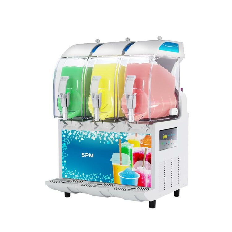 - Slushie machine equipped with 3x11-litres insulated tanks